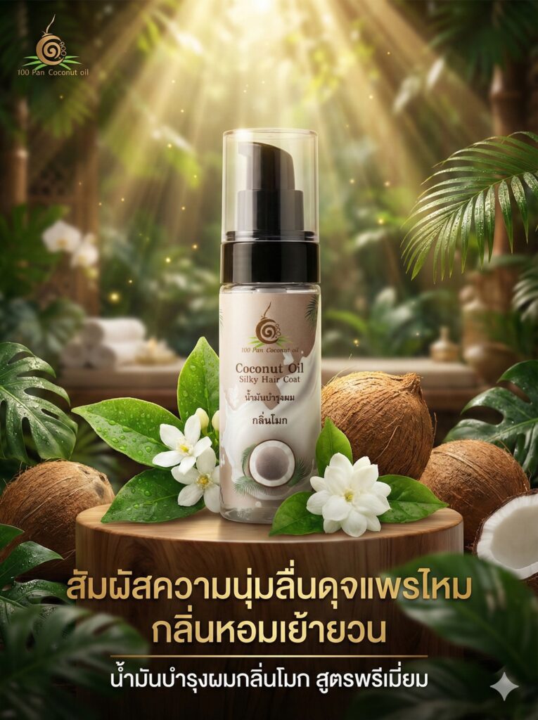 น้ำมันบำรุงผม กลิ่นโมก (Coconut Oil Silky Hair Coat)